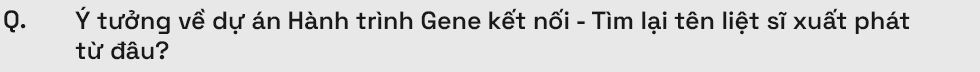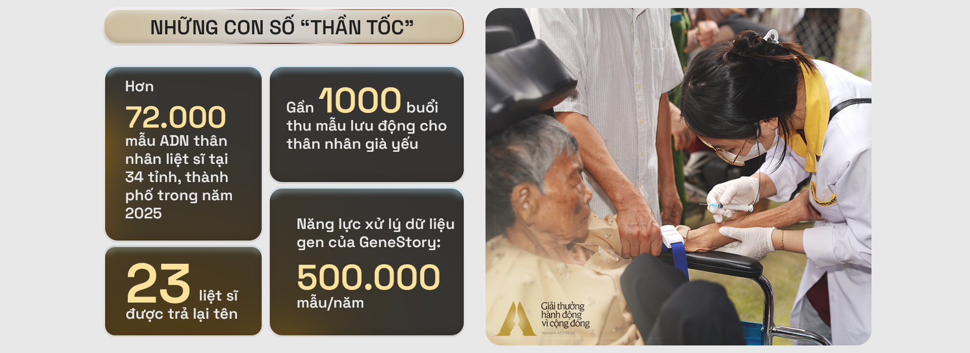 Dự án Hành trình Gene kết nối - Tìm lại tên liệt sĩ vừa được vinh danh ở hạng mục Ý tưởng Vì cộng đồng của Giải thưởng Hành động vì cộng đồng - Human Act Prize 2025. Đây là hạng mục tôn vinh những dự án với ý tưởng triển khai khả thi, góp phần thúc đẩy cộng đẩy cộng đồng theo hướng tích cực và bền vững hơn.