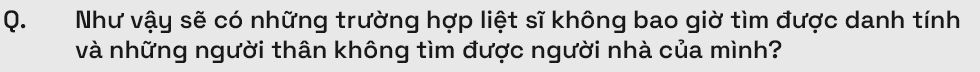 Hiện giờ ở Việt Nam còn đến gần 500.000 liệt sĩ chưa xác định được danh tính. Nếu cứ làm theo từng trường hợp riêng lẻ thì bao giờ mới hoàn tất?