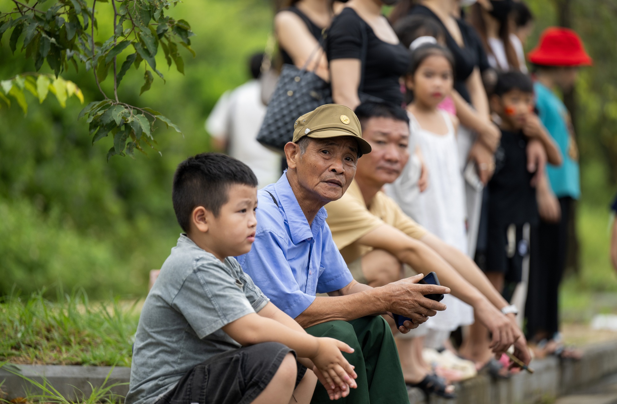 "Khối nghỉ hè" theo chân cha mẹ tới cổ vũ các chú bộ đội tập luyện chuẩn bị cho Lễ kỷ niệm 80 năm Quốc khánh 2/9