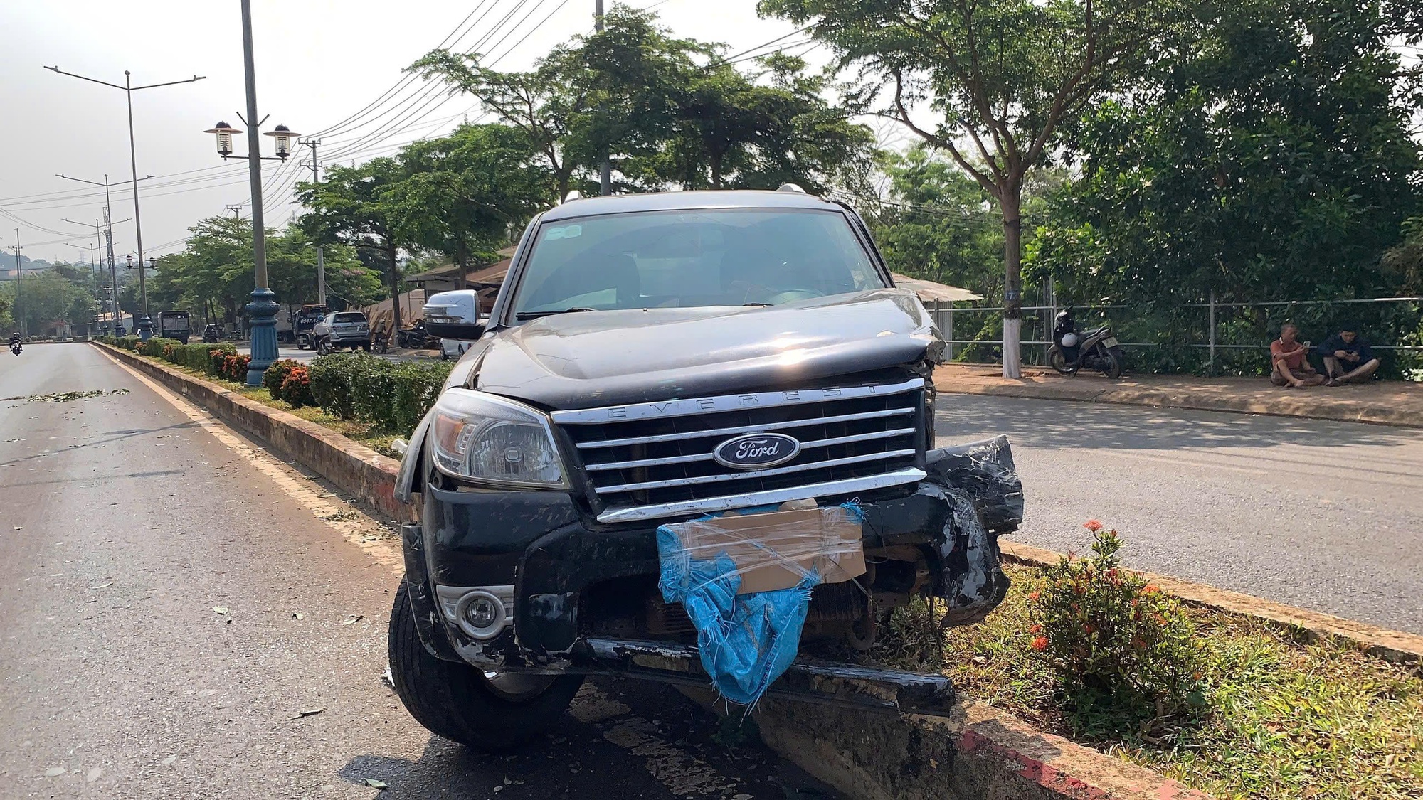 Sau cú va chạm mạnh, Y Gin Ta Byă tiếp tục điều khiển xe thêm một đoạn rồi lại lao lên dải phân cách mới dừng lại.