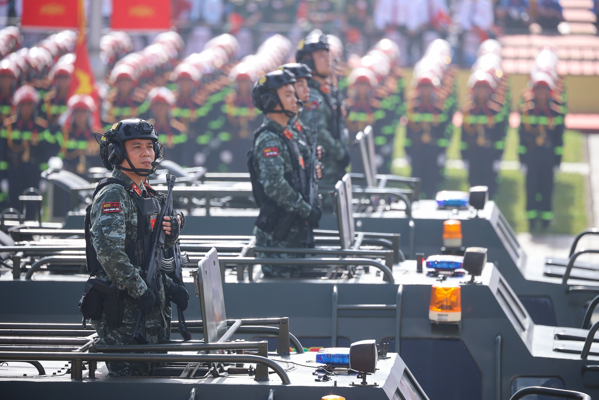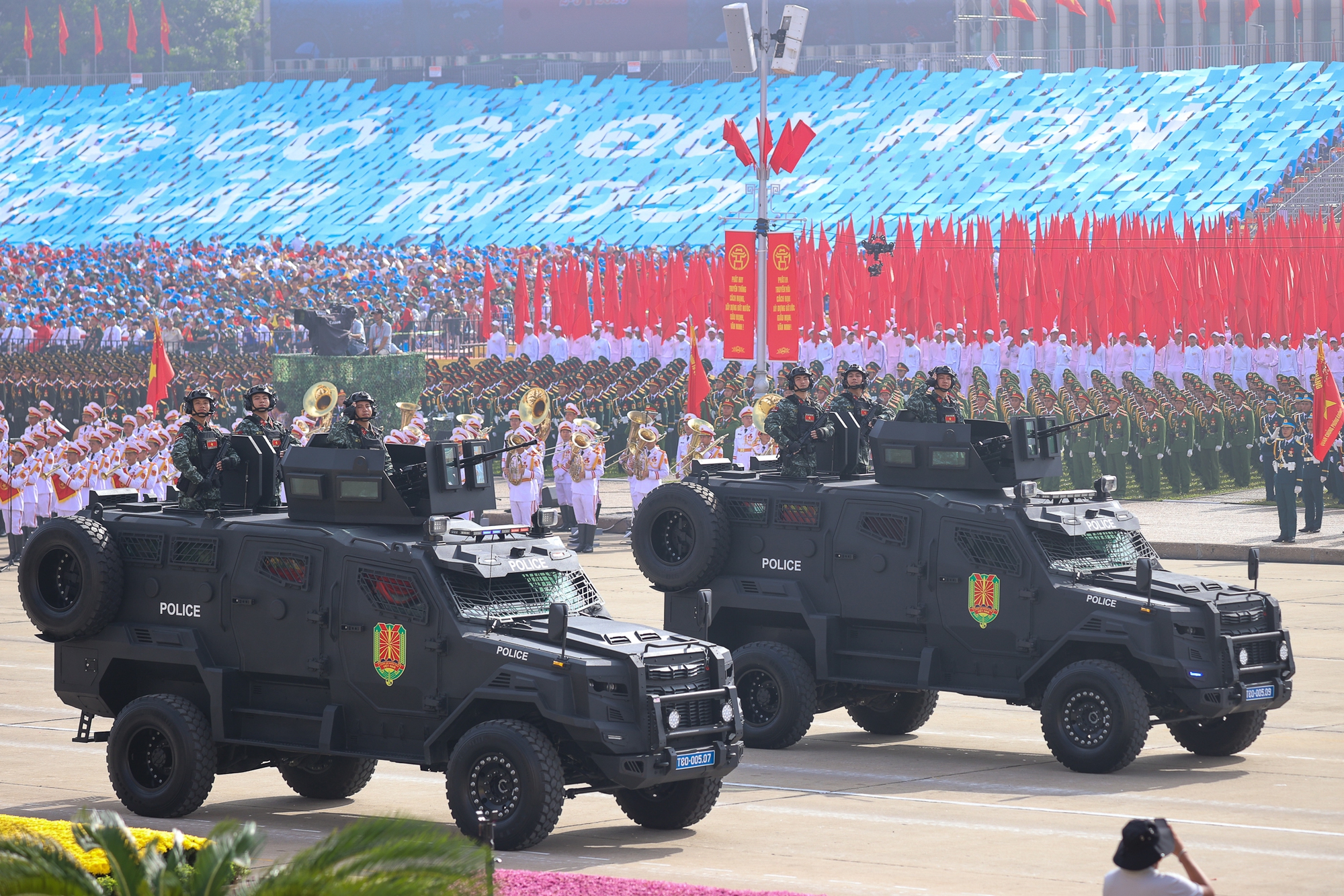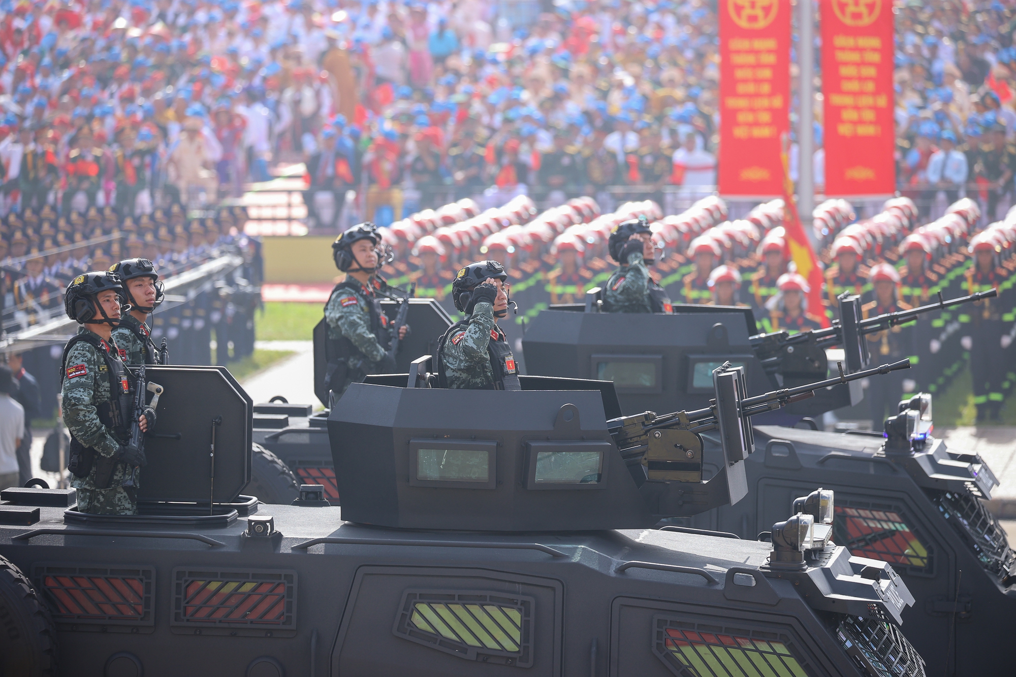 Dàn xe đặc chủng hiện đại của Công an nhân dân Việt Nam tham gia Lễ kỷ niệm, diễu binh, diễu hành chào mừng 80 năm Cách mạng tháng Tám thành công và Quốc khánh 2/9 (A80) thể hiện sức mạnh, khả năng sẵn sàng ứng phó với mọi tình huống.