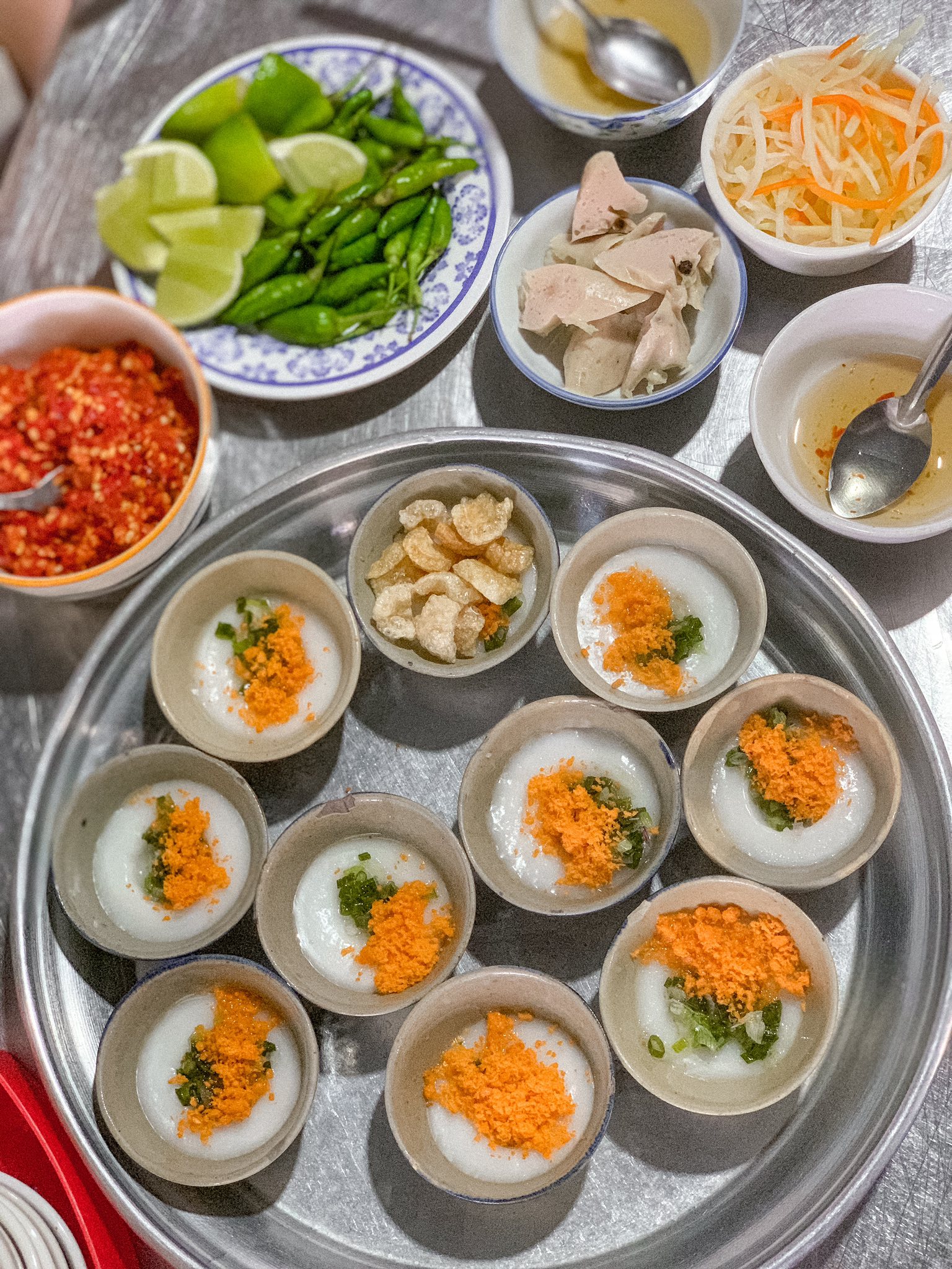 Bánh bèo vốn là món ăn rất quen thuộc với người Việt, đặc biệt ở miền Trung. Không cầu kỳ nguyên liệu, bánh bèo được làm từ bột gạo hấp chín, mềm mịn, ăn kèm tôm khô, mỡ hành, da heo chiên giòn, chan thêm nước mắm pha vừa miệng. Mỗi chén chỉ vài miếng nhỏ, ăn nhẹ nhàng nhưng càng ăn càng cuốn.