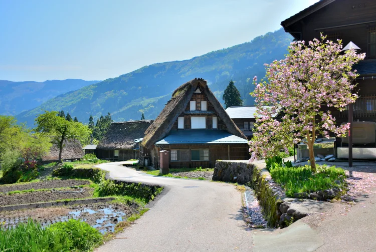 Tại “Làng nhà cổ mái tranh Ainokura”, nơi được Unesco công nhận là di sản thế giới, có khoảng 20 ngôi nhà mái dốc lợp tranh đã tồn tại từ hơn 350 năm về trước, nằm san sát giữa thung lũng núi. Những mái nhà tranh dốc đứng cùng khung cảnh yên bình của miền núi tạo nên một nơi lý tưởng để thư giãn và rời xa nhịp sống hối hả thường ngày.
