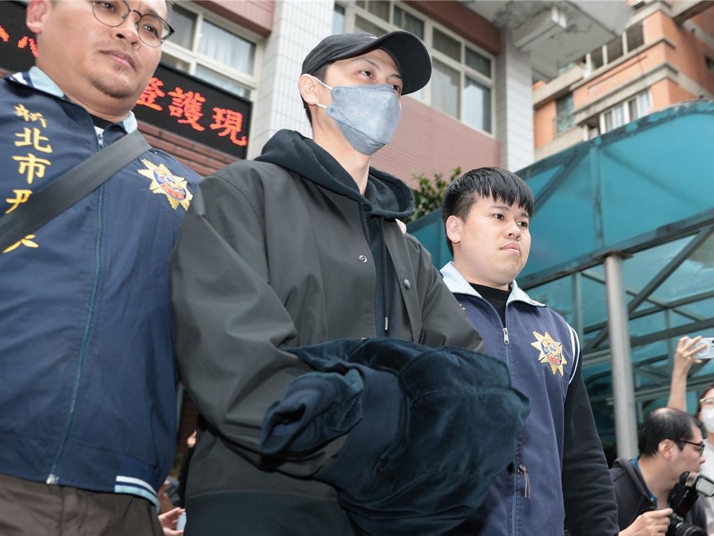 Nam diễn viên bị cảnh sát còng 2 tay đưa về đồn. Trong quá trình bị áp giải, anh bình tĩnh, không kháng cự hay hoảng loạn. Ảnh: China Times.