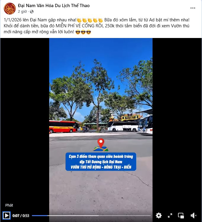 Thông tin được Đại Nam công bố trên fanpage chính thức, nhanh chóng thu hút sự quan tâm của du khách nhờ tổ hợp trải nghiệm “vườn thú – nông trại – biển” trong cùng một hành trình.