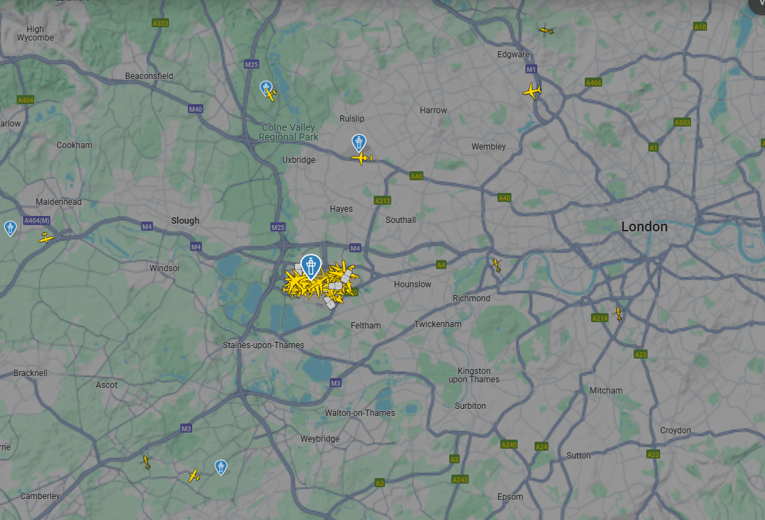 Dữ liệu FlightRadar cho thấy máy bay bị kẹt ở Heathrow, (Nguồn: FlightRadar24)