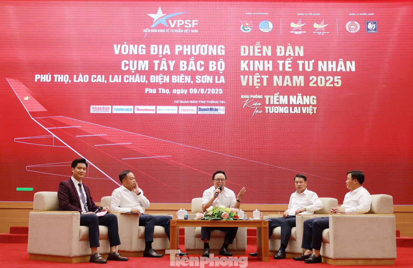Chiều 9/8, tại tỉnh Phú Thọ, Hội Doanh nhân trẻ Việt Nam tổ chức Vòng đối thoại địa phương Diễn đàn Kinh tế tư nhân Việt Nam (VPSF) 2025 - Phiên đối thoại cụm Tây Bắc Bộ. Diễn đàn có sự tham gia bảo trợ thông tin của báo Tiền Phong.