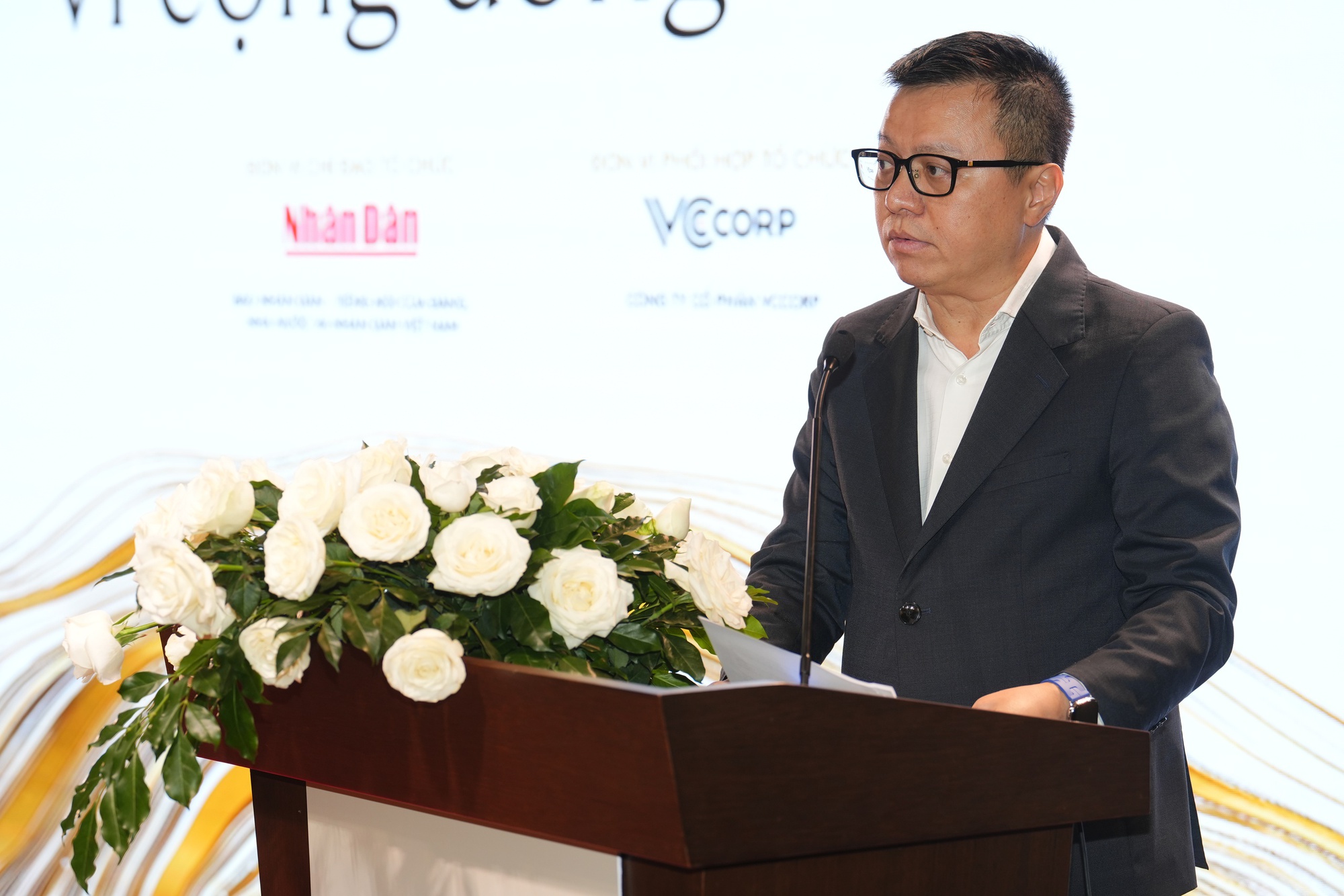 Ông Lê Quốc Minh, Ủy viên Trung ương Đảng, Tổng Biên tập Báo Nhân Dân, Phó trưởng ban Tuyên giáo và Dân vận Trung ương, Chủ tịch Hội nhà báo Việt Nam, Trưởng Ban Tổ chức phát biểu tại họp báo công bố Human Act Prize 2025