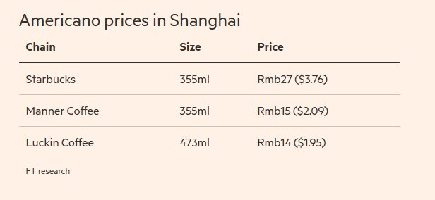 Giá một ly Americano tại Thượng Hải