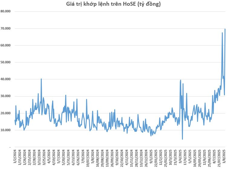Kỷ lục mới: Gần 70.000 tỷ đồng khớp lệnh trên HoSE