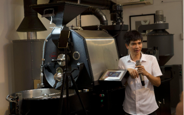 Các chuyên gia cà phê và chủ xưởng rang tham dự lễ ra mắt Mars V5 tìm hiểu về công nghệ máy rang thông minh và thưởng thức cafe rang từ máy