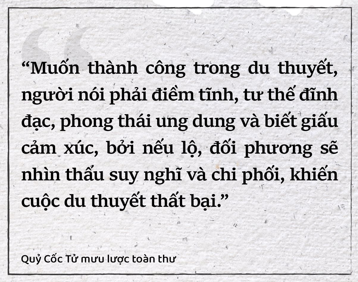 Để “Quyền” phát huy tối đa, người thuyết khách phải phối hợp thuần thục ba giác quan: mắt quan sát, tai lắng nghe, miệng ứng đối. Sự kết hợp này giúp họ phản ứng linh hoạt, đọc vị tín hiệu ngầm và điều chỉnh thông điệp kịp thời. Cách nói quan trọng không kém nội dung. Giọng điệu, ánh mắt, biểu cảm, nếu được sử dụng đúng thời điểm, đều có thể trở thành “vũ khí” thuyết phục. Quyền biến không phải là giả tạo, mà là nghệ thuật làm chủ không gian giao tiếp, tình huống và chính bản thân mình.