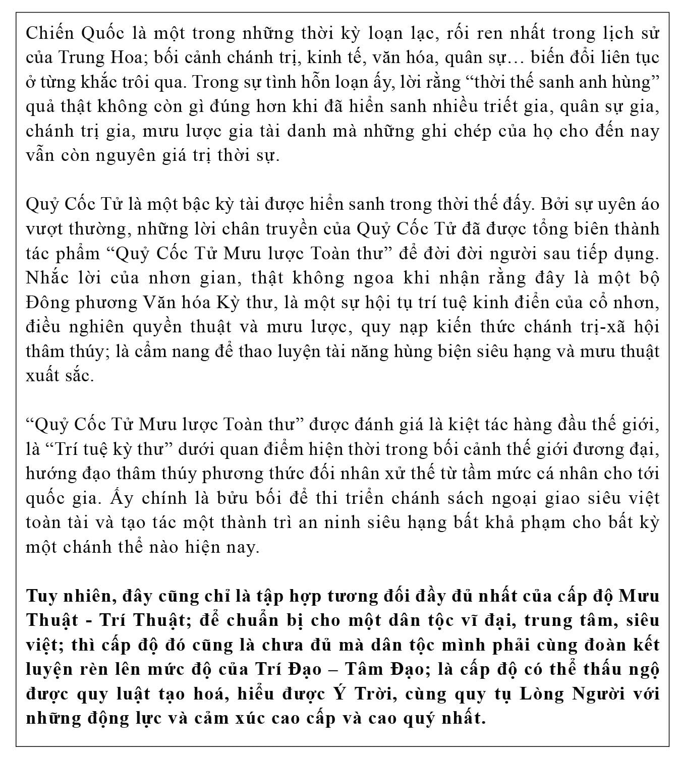 (Đón đọc kỳ sau: Quỷ Cốc Tử Mưu lược toàn thư – Phù ngôn)