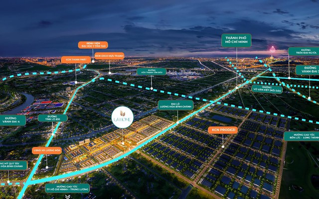 Nằm ngay mặt tiền đại lộ Lương Hòa – Bình Chánh, khu đô thị LA Home quy mô 100 ha là một trong những dự án hưởng lợi trực tiếp từ làn sóng hạ tầng này. Dự án nằm ở tâm điểm kết nối các tuyến hạ tầng trọng điểm của khu vực, có thể tiếp cận chỉ trong 5 phút. Đặc biệt, thời điểm vận hành các tuyến hạ tầng lớn này trùng khớp thời gian bàn giao nhà ở tại LA Home, tạo động lực để cư dân chuyển đến sinh sống, khai thác ngay từ khi nhận nhà.