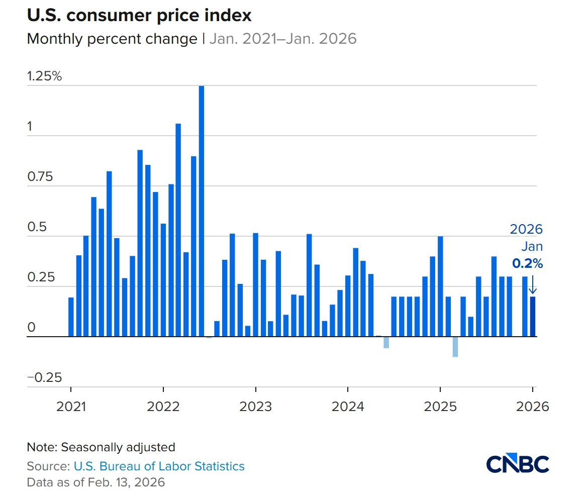 CPI Mỹ hàng tháng, từ tháng 1/2021 đến tháng 1/2026.