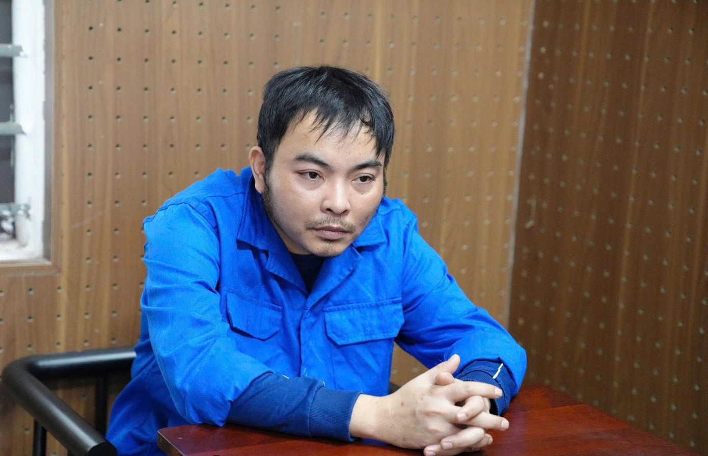 Công an lấy lời khai đối tượng cầm đầu Tạ Minh Châu. (Ảnh: Công an Phú Thọ).