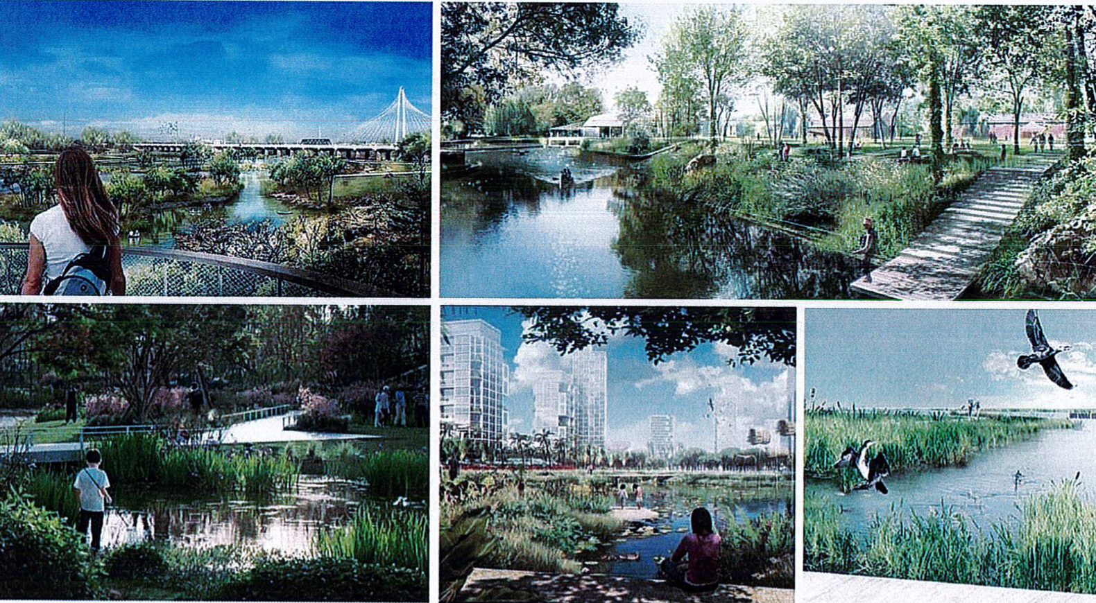 Hạt nhân xanh về cảnh quan của khu vực là hồ điều tiết trung tâm, được quy hoạch như một "quảng trường nước" có chức năng kép. Cụ thể, vừa là hạ tầng kỹ thuật thủy văn vừa là trung tâm thẩm mỹ của toàn khu vực.