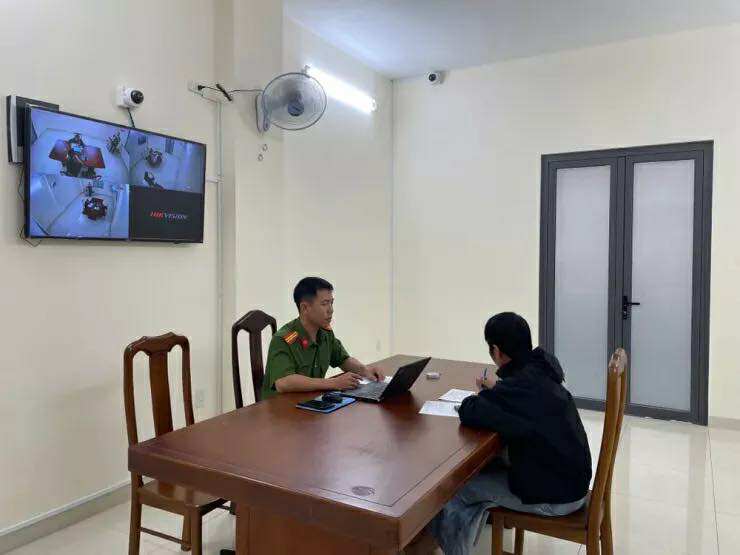 Chị Hòa làm việc với cơ quan chức năng. Ảnh: ANTV Khánh Hòa