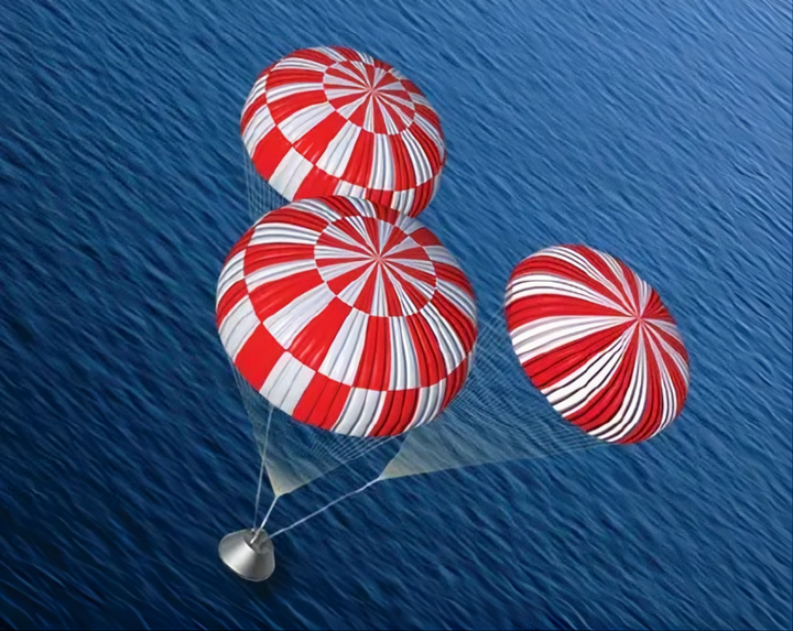 (14) Mô-đun phi hành đoàn Orion hạ cánh xuống Thái Bình Dương. (Nguồn: Roen Kelly)