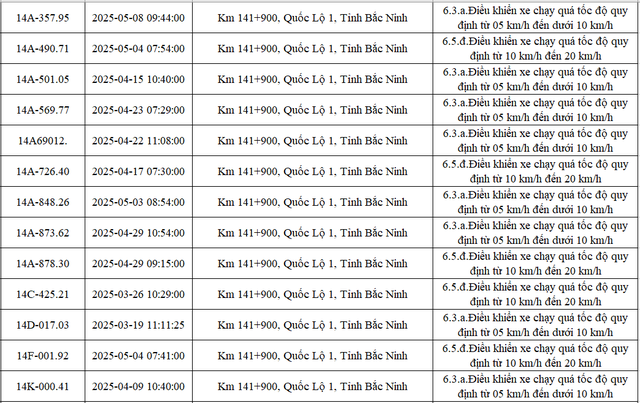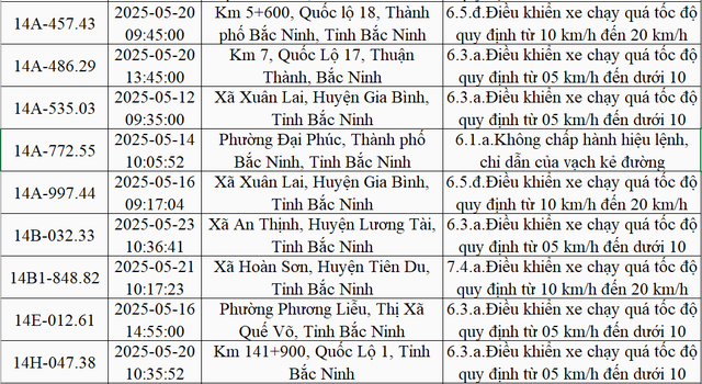 Bên cạnh đó, từ ngày 17/3/2025 đến ngày 25/5/2025, lực lượng CSGT tỉnh Bắc Ninh đã sử dụng trang thiết bị nghiệp vụ, Hệ thống giám sát xử lý vi phạm TTATGT phát hiện và gửi thông báo tới hơn 3600 chủ phương tiện có phương tiện vi phạm các quy định TTATGT. Trong đó, có các ô tô mang biển số xe Quảng Ninh phạm lỗi như sau: