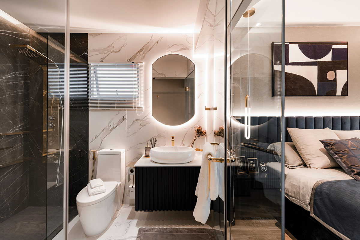 Không thể phủ nhận sự tiện lợi của nhà vệ sinh trong phòng ngủ, đặc biệt với các gia đình sống trong căn hộ hoặc nhà phố diện tích hạn chế. Việc tích hợp không gian này giúp tiết kiệm thời gian di chuyển, tăng tính riêng tư và phù hợp với nhịp sống hiện đại.