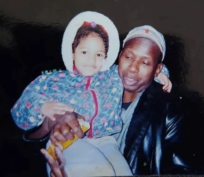 Queen Kadija chụp ảnh cùng cha khi mới chào đời.