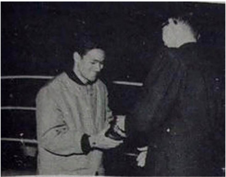 Ảnh chụp Gary Elms đối đầu với 1 võ sĩ Trung Quốc