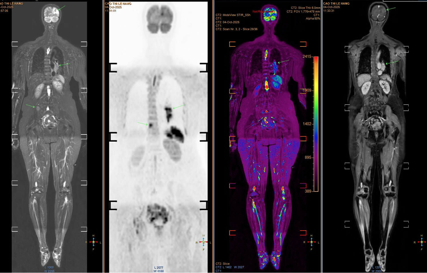 Tuy nhiên, các triệu chứng ngày càng nhiều và nặng hơn, bệnh nhân mới chịu đi khám sức khỏe. Kết quả chụp MRI cho thấy nhiều ổ tổn thương di căn dạng biểu mô tuyến. Khi chụp CT ngực, bác sĩ phát hiện một khối u lớn ở đáy phổi trái, xác định là ung thư phổi giai đoạn muộn, đã di căn sang nhiều cơ quan, trong đó có não bộ. Tiên lượng bệnh rất xấu.