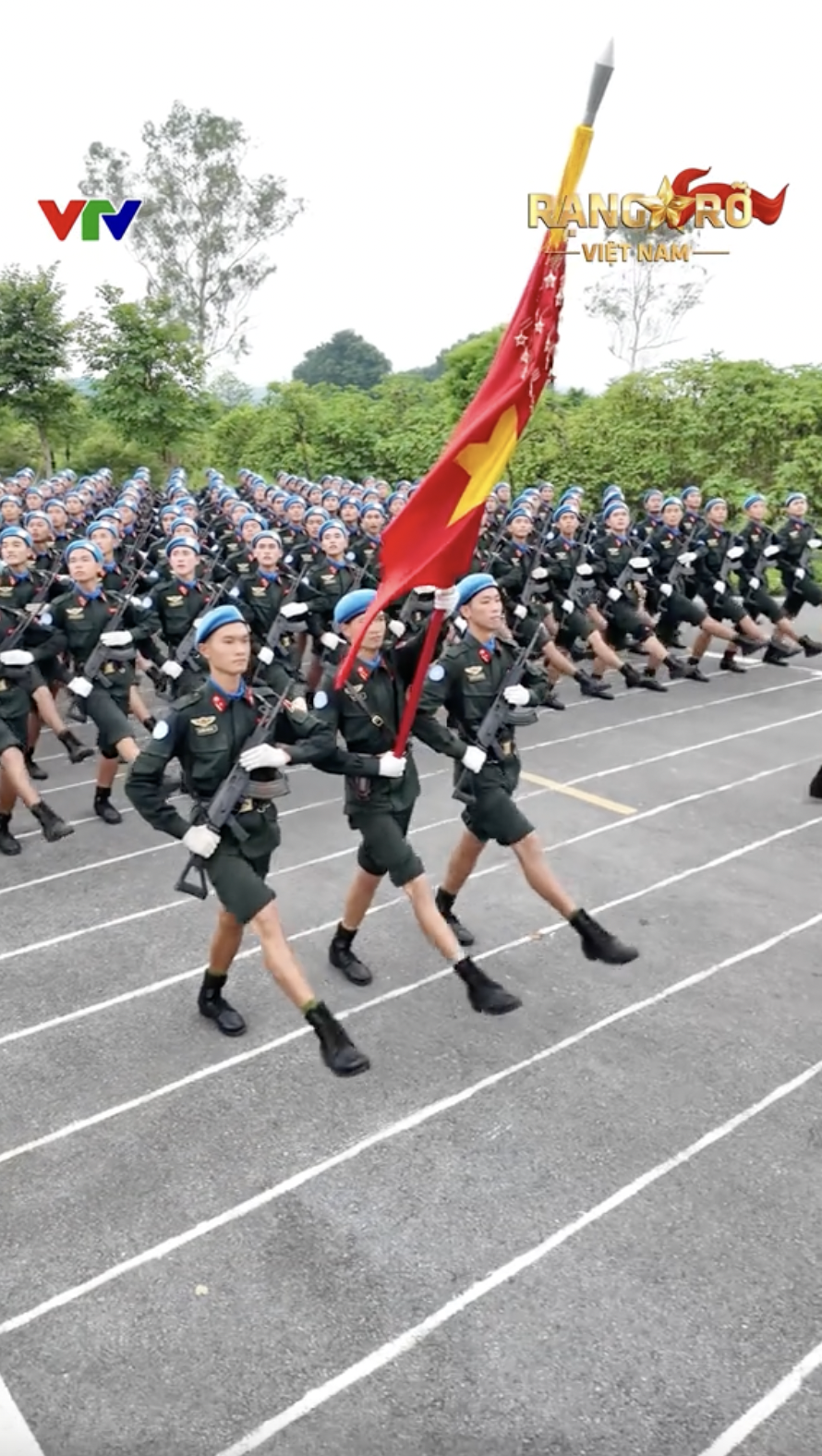 Khối nam Sĩ quan Cảnh sát Gìn giữ Hòa bình Liên hợp quốc trong quá trình tập luyện (Ảnh chụp màn hình/@vtv24news)