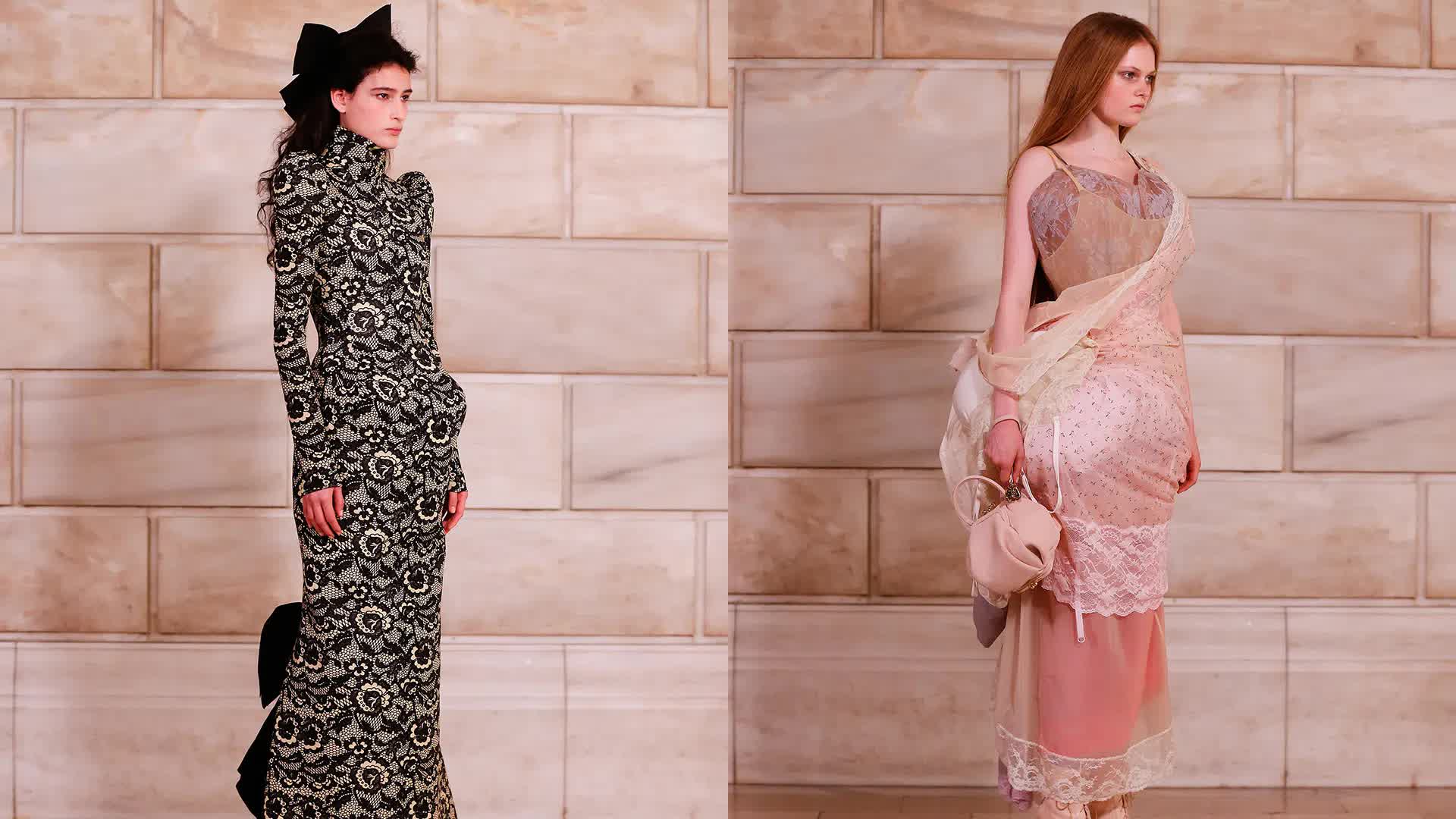 Tạm biệt những biểu tượng văn hóa Mỹ cổ điển, Marc Jacobs mượn lại yếu tố punk quen thuộc đã giúp mình thành danh. Cầu vai được thổi phồng, hông độn, eo hạ thấp, cổ áo dựng đứng và cổ tay chân cừu - trang phục phảng phất những dấu ấn cắt may cổ điển thời Victoria, được loại bỏ tính khuôn phép và cấu trúc thô nặng, nhưng vẫn đảm bảo ấn tượng thị giác vẹn nguyên.