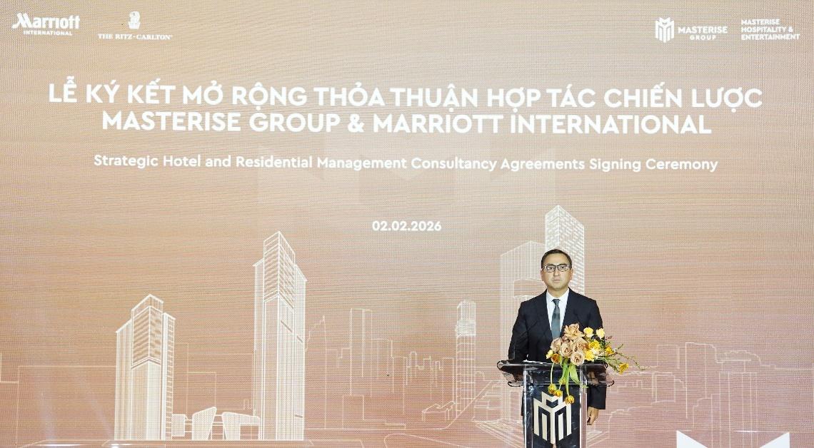 Hà Nội, ngày 02 tháng 02 năm 2026 – Masterise Group chính thức công bố ký kết thỏa thuận hợp tác quản lý đa dự án với Marriott International – Tập đoàn khách sạn lớn nhất thế giới.