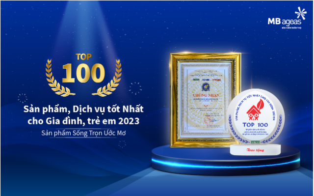 Sản phẩm Sống Trọn Ước mơ của MB Ageas Life đã được vinh danh trong chương trình 'Top 100 sản phẩm, dịch vụ tốt nhất cho gia đình và trẻ em' năm 2023.