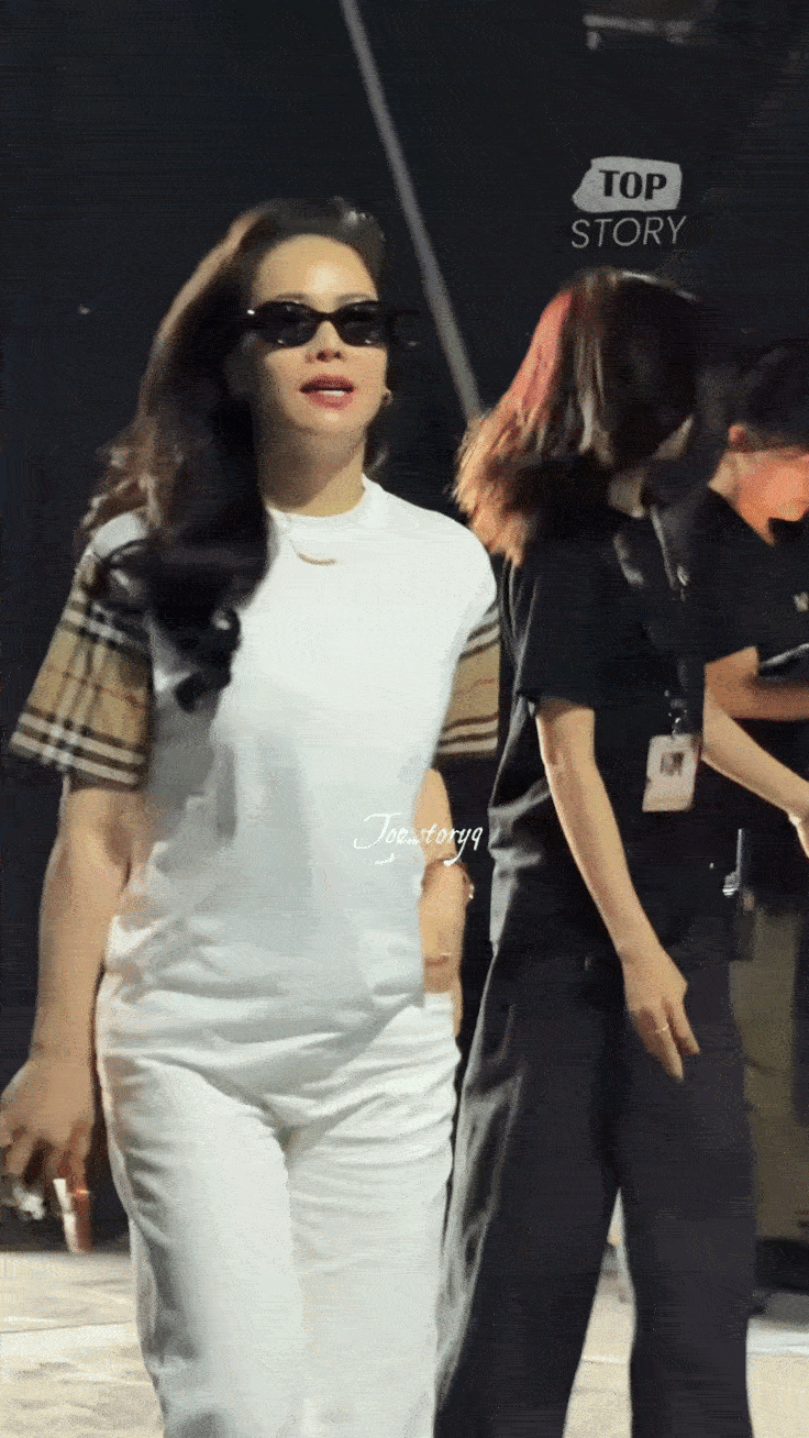 Thu hút ống kính không kém Minh Hằng chính là Nhật Kim Anh. Sau khoảng thời gian tập trung vào kinh doanh, Nhật Kim Anh đang năng nổ trở lại làng giải trí thông qua các tác phẩm phim ảnh và âm nhạc. Nữ nghệ sĩ bước đến trường quay trong trang phục đơn giản: áo phông và quần jean trắng. Cô nàng nhấn nhá với kính râm đen sành điệu, tạo nên tổng thể outfit gọn gàng mà vẫn thời trang, trẻ trung.