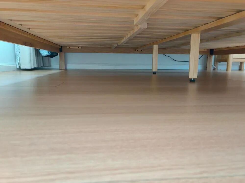 Mỗi sáng, mẹ đều dọn giường, phủi tóc, bụi, và khi có nắng thì đem chăn ra phơi. Thêm một việc nữa: lau gầm giường bằng cây lau tĩnh điện, chỉ 2–3 phút.