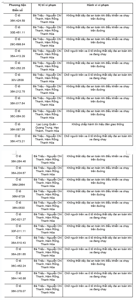 Theo ghi nhận từ cơ quan chức năng, tại Thanh Hóa, hệ thống camera giám sát giao thông trong khoảng thời gian từ 24/2 đến 5/3/2026 đã phát hiện nhiều trường hợp vi phạm. Đáng chú ý, các lỗi phổ biến gồm không thắt dây an toàn và sử dụng điện thoại khi đang điều khiển phương tiện.