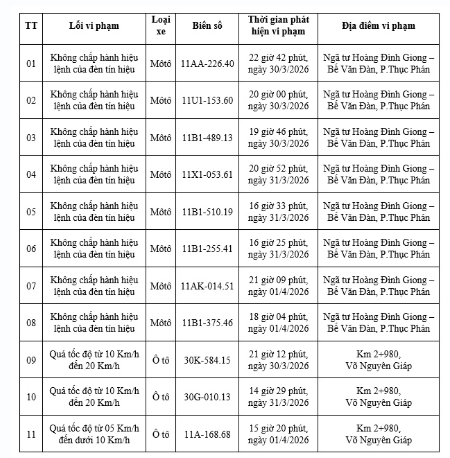 Trong khi đó, tại Hưng Yên, từ 30/3 đến 5/4, lực lượng Cảnh sát giao thông đã xử lý 25 trường hợp vi phạm. Cụ thể, có 5 trường hợp không tuân thủ tín hiệu đèn giao thông và 20 trường hợp vi phạm tốc độ, phần lớn là ô tô.