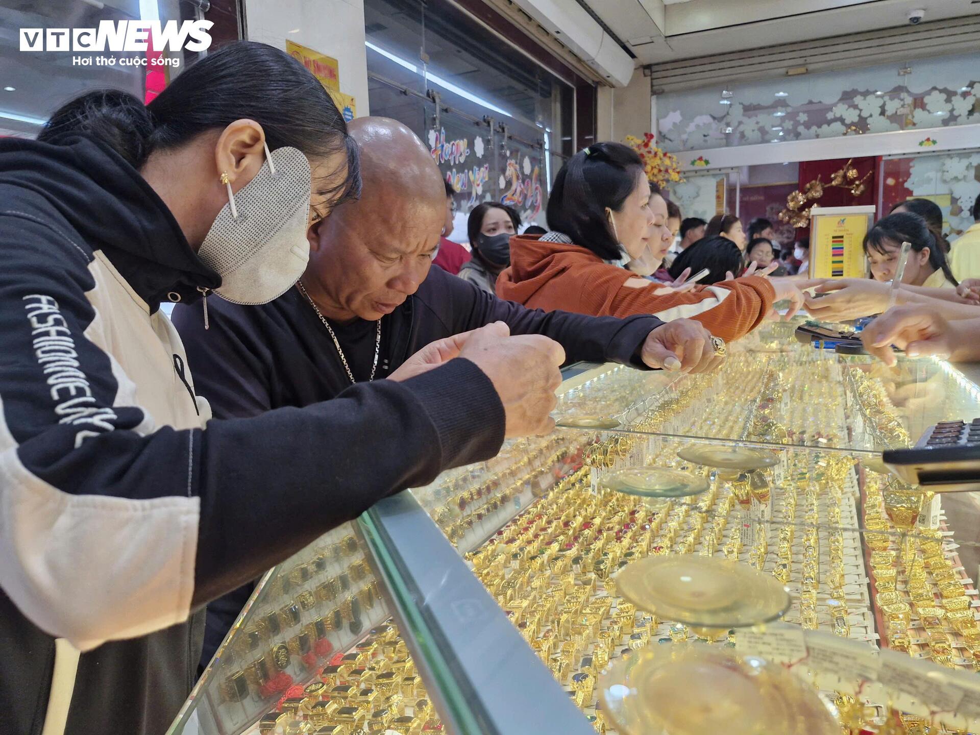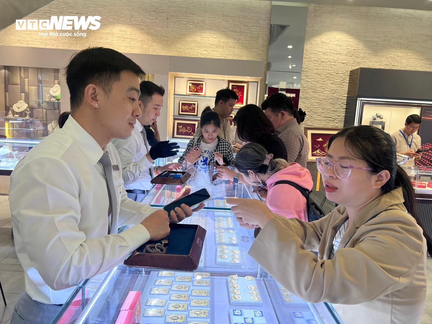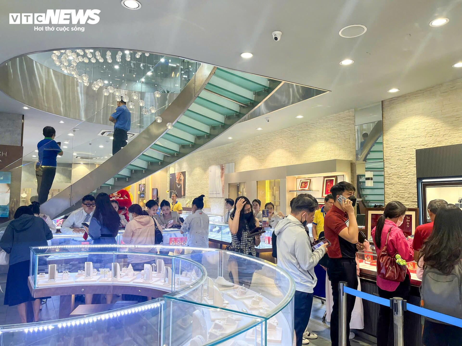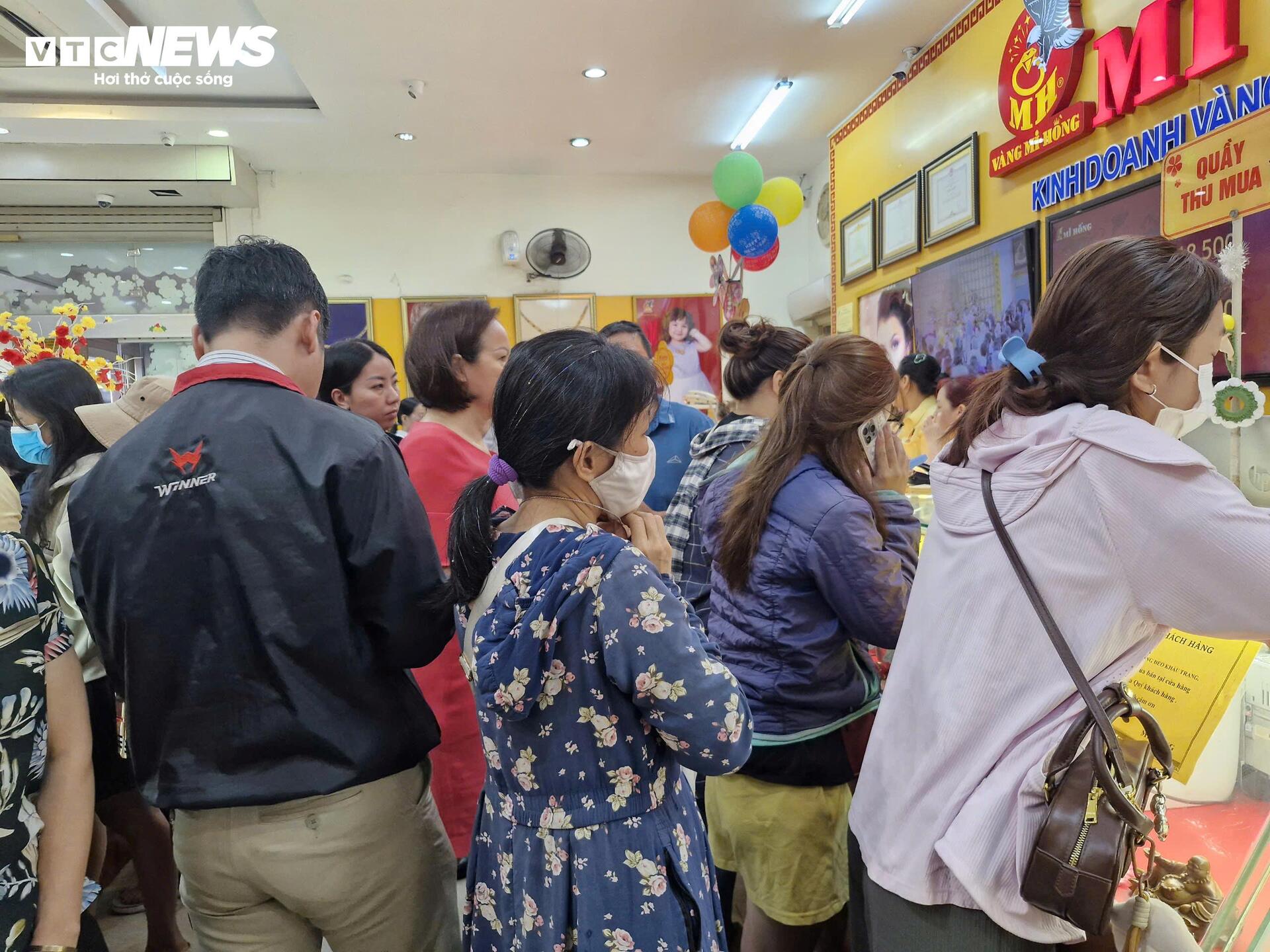 Cảnh mua vàng diễn ra sôi động từ sáng đến trưa tại các tiệm vàng lớn ở TP.HCM.