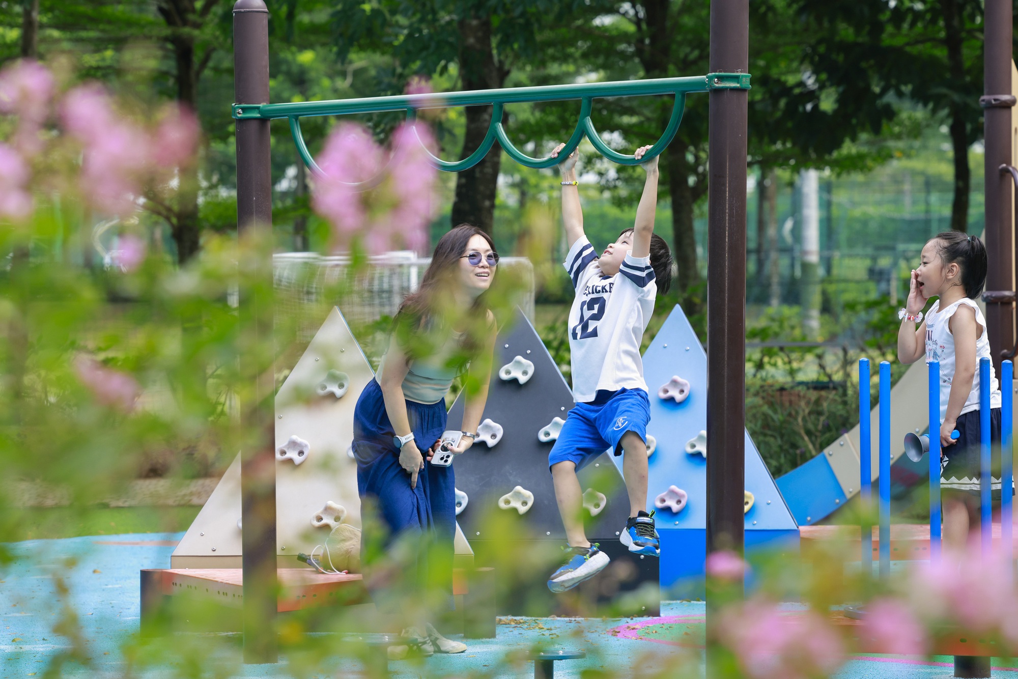 Điều khiến vợ chồng anh Nhật yên tâm hơn cả là môi trường sống sinh thái nơi đây. Không gian xanh rộng mở, nhiều khoảng thiên nhiên len lỏi trong khu đô thị giúp con trẻ có thêm điều kiện vận động, khám phá mỗi ngày. "Con không chỉ đi học rồi về nhà, mà còn có không gian và thời gian để chơi, để quan sát, để học và lớn lên giữa thiên nhiên", anh chia sẻ.