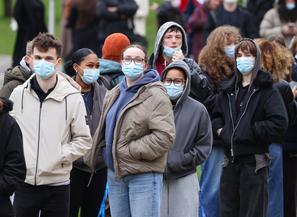 Các sinh viên đeo khẩu trang