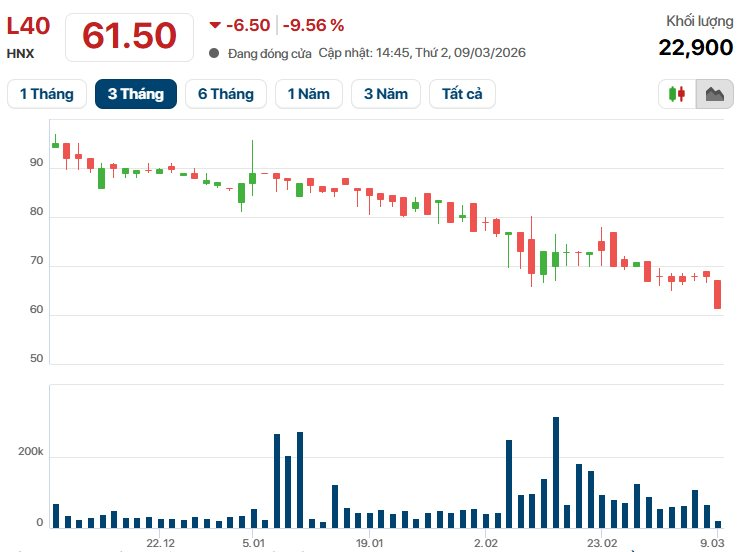 Trên thị trường chứng khoán, cổ phiếu L40 có giá 61.500 đồng/cp, vốn hóa doanh nghiệp ở mức 664 tỷ đồng.