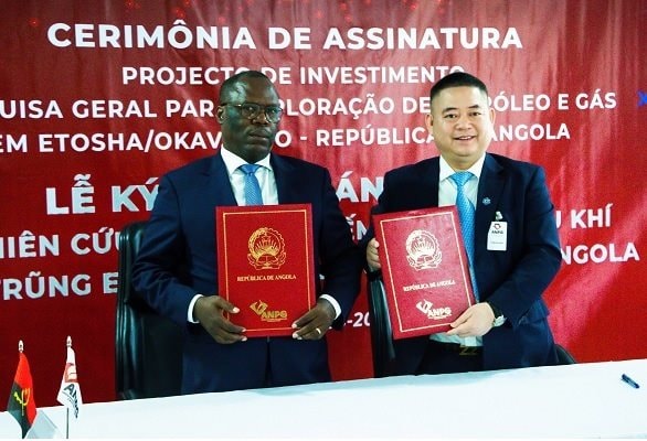 Chủ tịch Tập đoàn Xuân Thiện – ông Nguyễn Văn Thiện (phải) và Chủ tịch ANPG trong lễ ký kết ngày 17.3 tại Luanda. Ảnh: Tập đoàn Xuân Thiện
