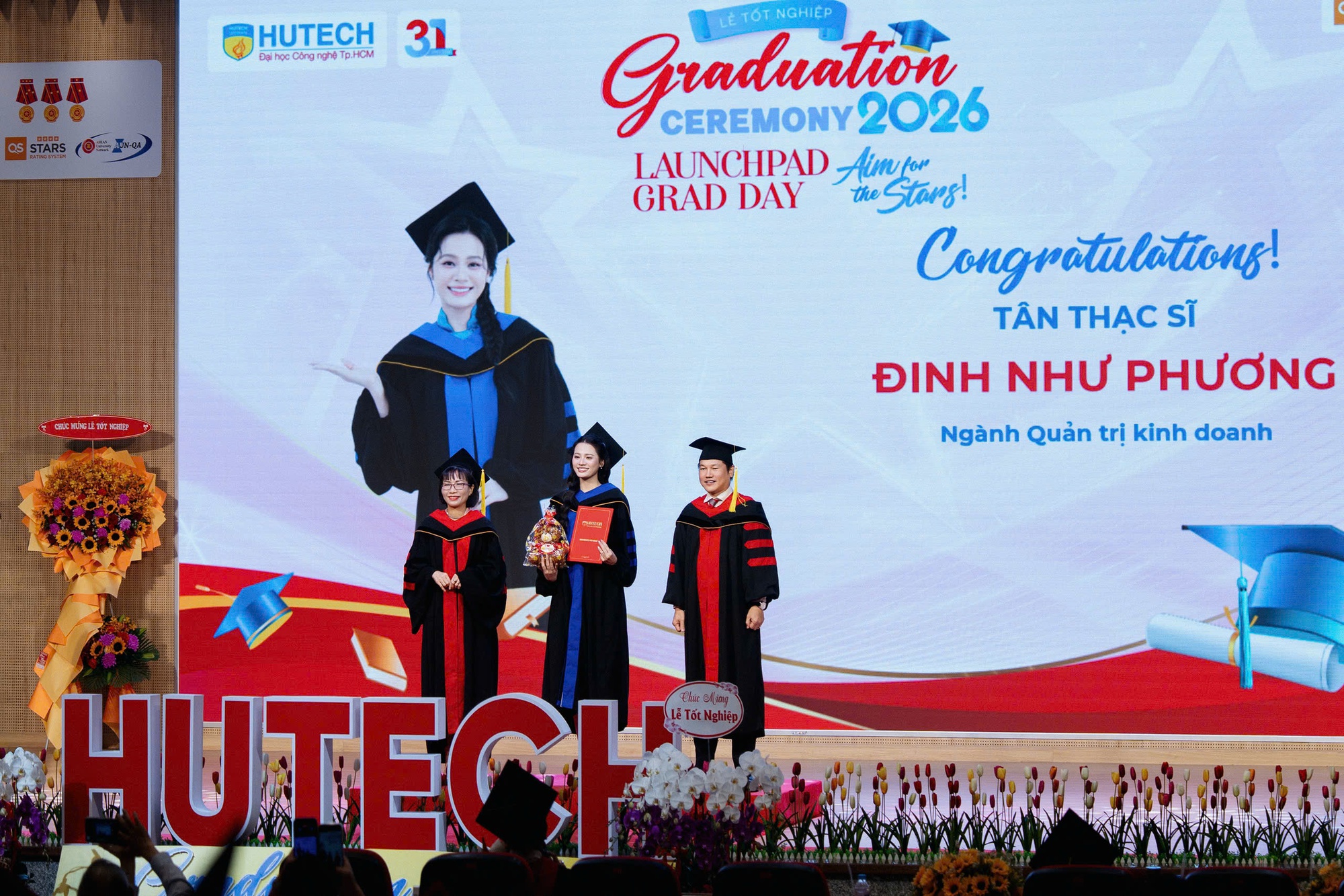 Hoa hậu Đinh Như Phương chính thức tốt nghiệp Thạc sĩ chuyên ngành Quản trị kinh doanh tại Trường Đại học Công nghệ TP.HCM. Trong ngày đón nhận niềm vui này, nàng hậu gây ấn tượng bởi nhan sắc rạng rỡ, không giấu được niềm hạnh phúc khi gia đình, người thân đều có mặt đông đủ để chúc mừng. Khi bài đăng được chia sẻ trên trang cá nhân, người hâm mộ cũng dành lời chúc, đồng thời bày tỏ sự ngưỡng mộ trước nỗ lực của người đẹp thời gian qua.