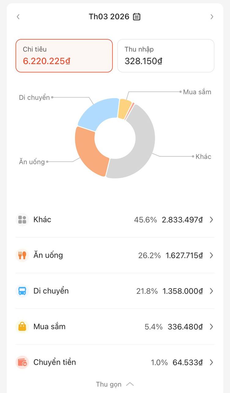 “Mình chủ yếu chi tiêu qua app nên thường khi nhận lương, mình sẽ chuyển 15 triệu vào ví điện tử. Đơn đặt đồ ăn, đặt xe công nghệ hay mua sắm, mình đều thanh toán qua ví điện tử đó. Phần còn lại thì để trong tài khoản ngân hàng thôi chứ cũng không gửi tiết kiệm hay đầu tư gì. Khoảng 2-3 tháng 1 lần, khi nào gom đủ tiền, mình sẽ đi mua 1 chỉ vàng hoặc 1,5 chỉ vàng” - Mai Trang tiết lộ.