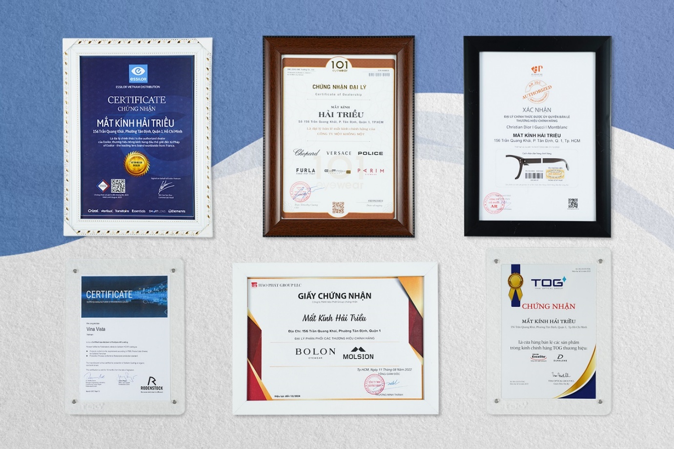 Kính Hải Triều hiện là đại lý chính hãng ủy quyền của 30+ thương hiệu nổi tiếng thế giới