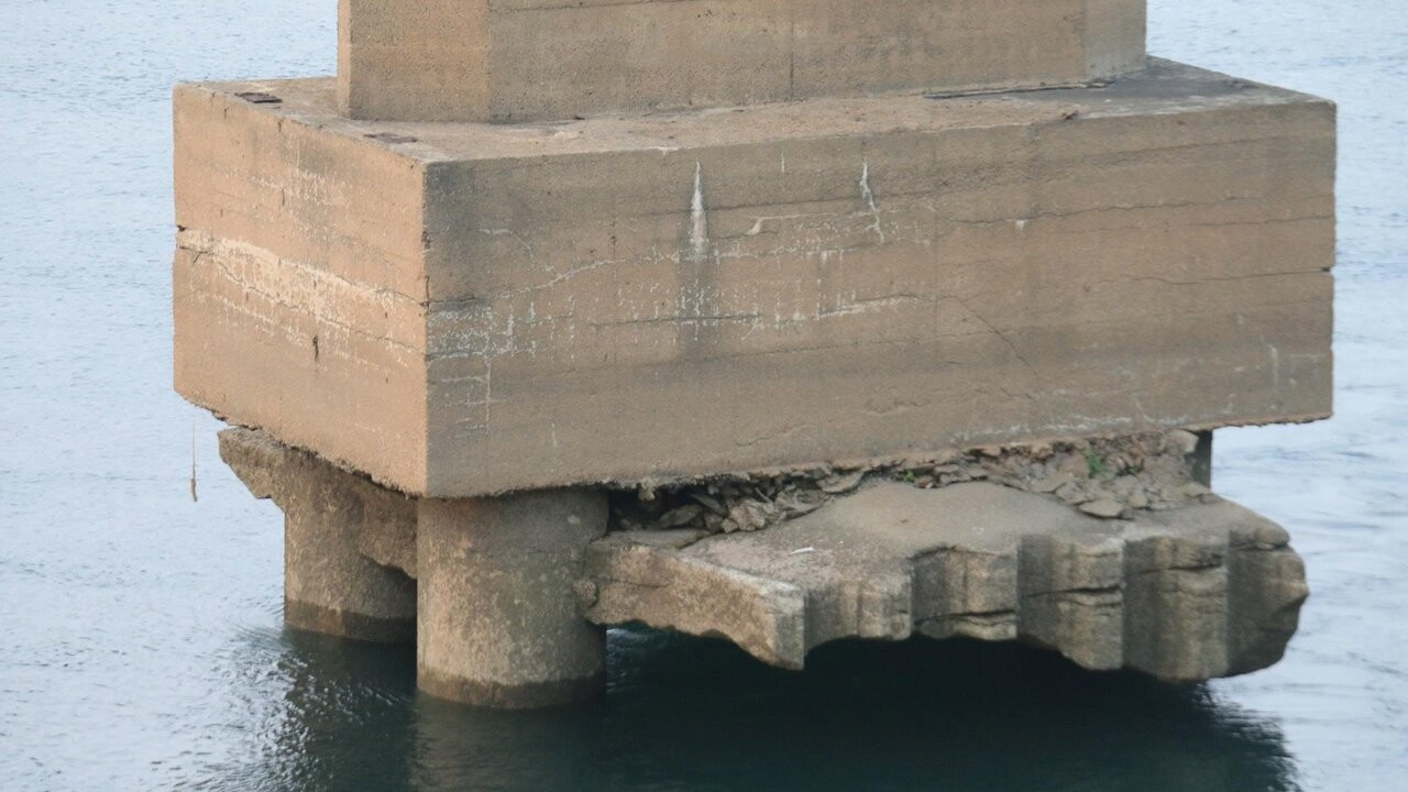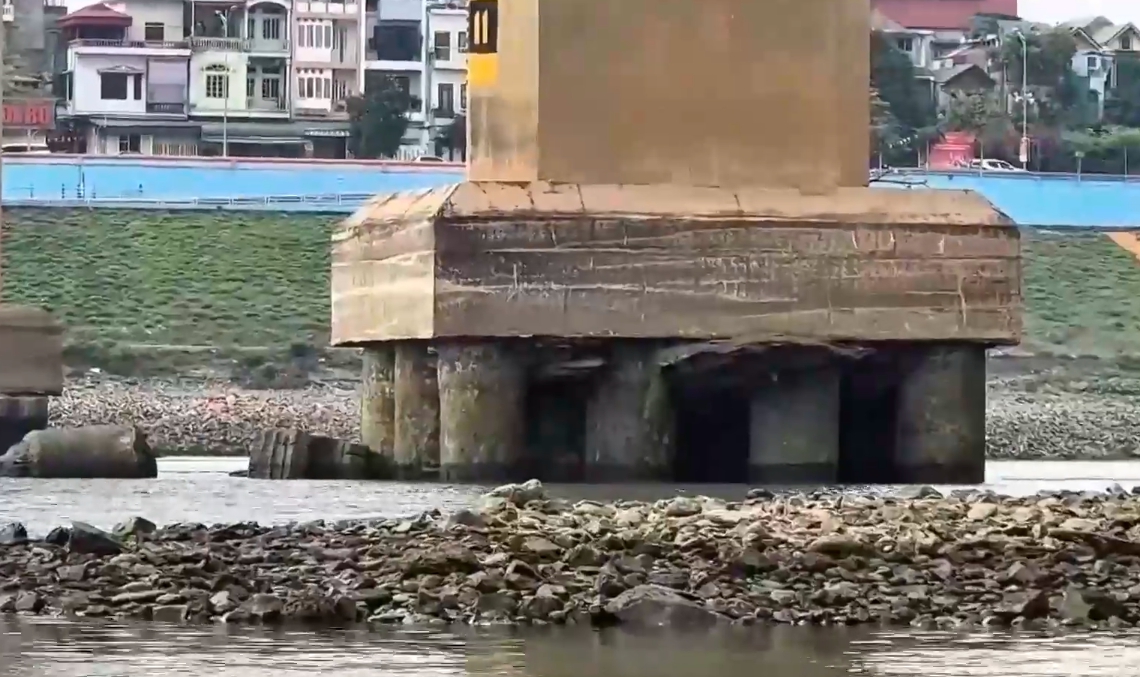 Mực nước sông Đà xuống thấp, lộ trụ cầu