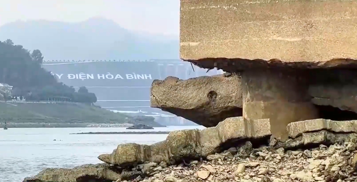 Mực nước Sông Đà đoạn hạ lưu Nhà máy Thủy điện Hòa Bình đang giảm mạnh, để lộ nhiều bãi sỏi và cả mố trụ của cầu Hòa Bình vốn nằm sâu dưới lòng sông. Nhiều khu vực giữa dòng xuất hiện cồn cát lớn, có nơi nhìn thấy rõ đáy sông.