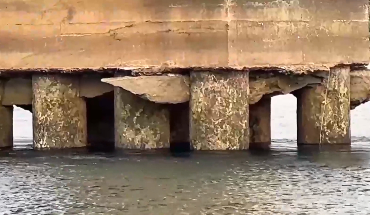 Mố trụ cầu Hòa Bình lộ rõ.