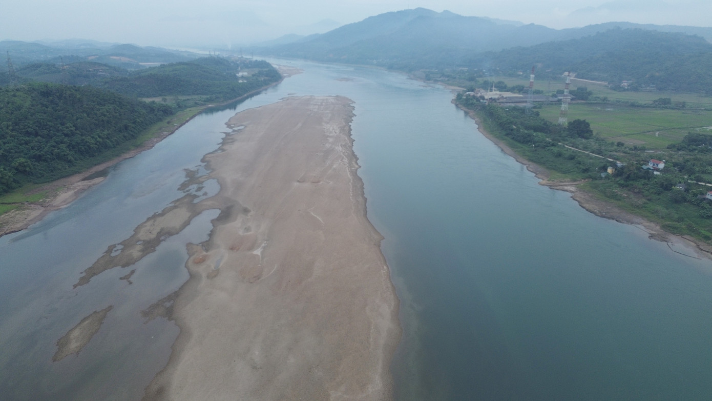 Ngày 7/3, ghi nhận của phóng viên tại khu vực hạ lưu Thủy điện Hòa Bình, tỉnh Phú Thọ cho thấy mực nước sông Đà giảm rõ rệt so với cùng thời điểm năm 2025.