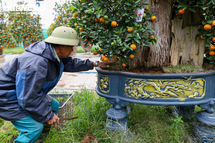 Theo ghi nhận của PV Báo điện tử VTC News, những ngày này, nhiều nhà vườn tại làng quất Tứ Liên tất bật lên chậu, tỉa tót và trang trí các gốc quất “khủng” để kịp đưa ra thị trường Tết Bính Ngọ 2026.