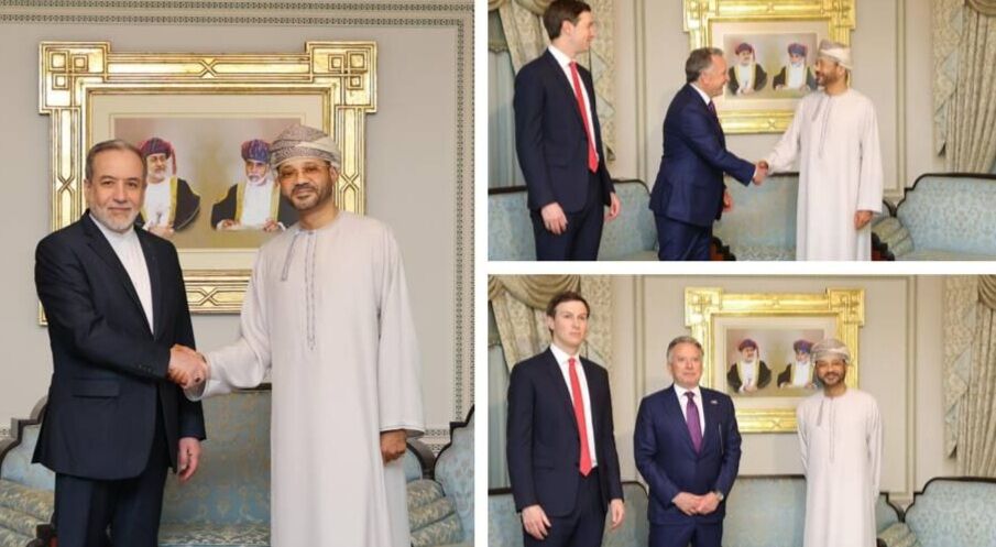 Bộ trưởng Bộ Ngoại giao Oman Sayyid Badr bin Hamad Al Busaidi lần lượt gặp gỡ Bộ trưởng Bộ Ngoại giao Iran Abbas Araghchi (ảnh trái) và hai đặc phái viên Mỹ Steve Witkoff và Jared Kushner - Ảnh: IRNA
